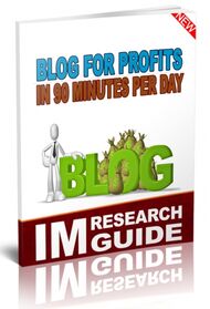 Internet Marketing Personal Use ebook “Blog for Profits in 90 Minutes per Day” covers: Brainstorm Build Your Blog Top 10 Posts Tips Posts How To Posts Motivational and Case S...